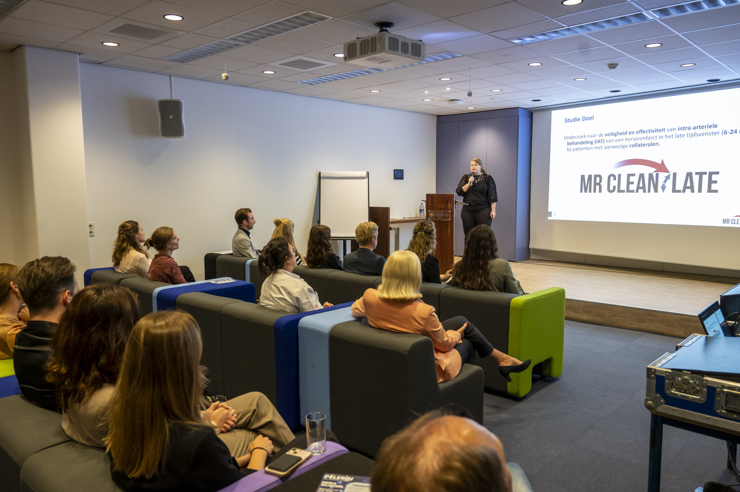 De 5 best beoordeelde abstracts worden uitgenodigd om tijdens het symposium live een presentatie over hun onderzoek te geven en werden beoordeeld door de aanwezige vakjury.
